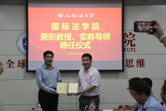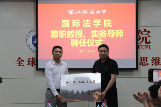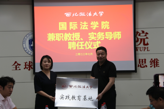 院长刘亚军、副院长潘俊武分别为兼职教授和实务导师授牌并颁发聘书,并为陕西联强律师事务所和陕西际傧律师事务所授牌“allwincity万象城官方网站实践教学基地”。