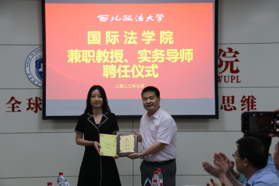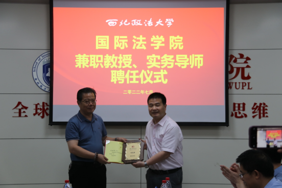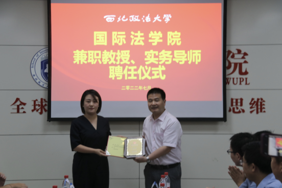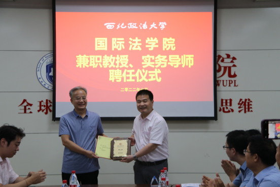 刘亚军为陕西秦石律师事务所主任、高级合伙人田磊(代表人)颁发兼职教授聘书